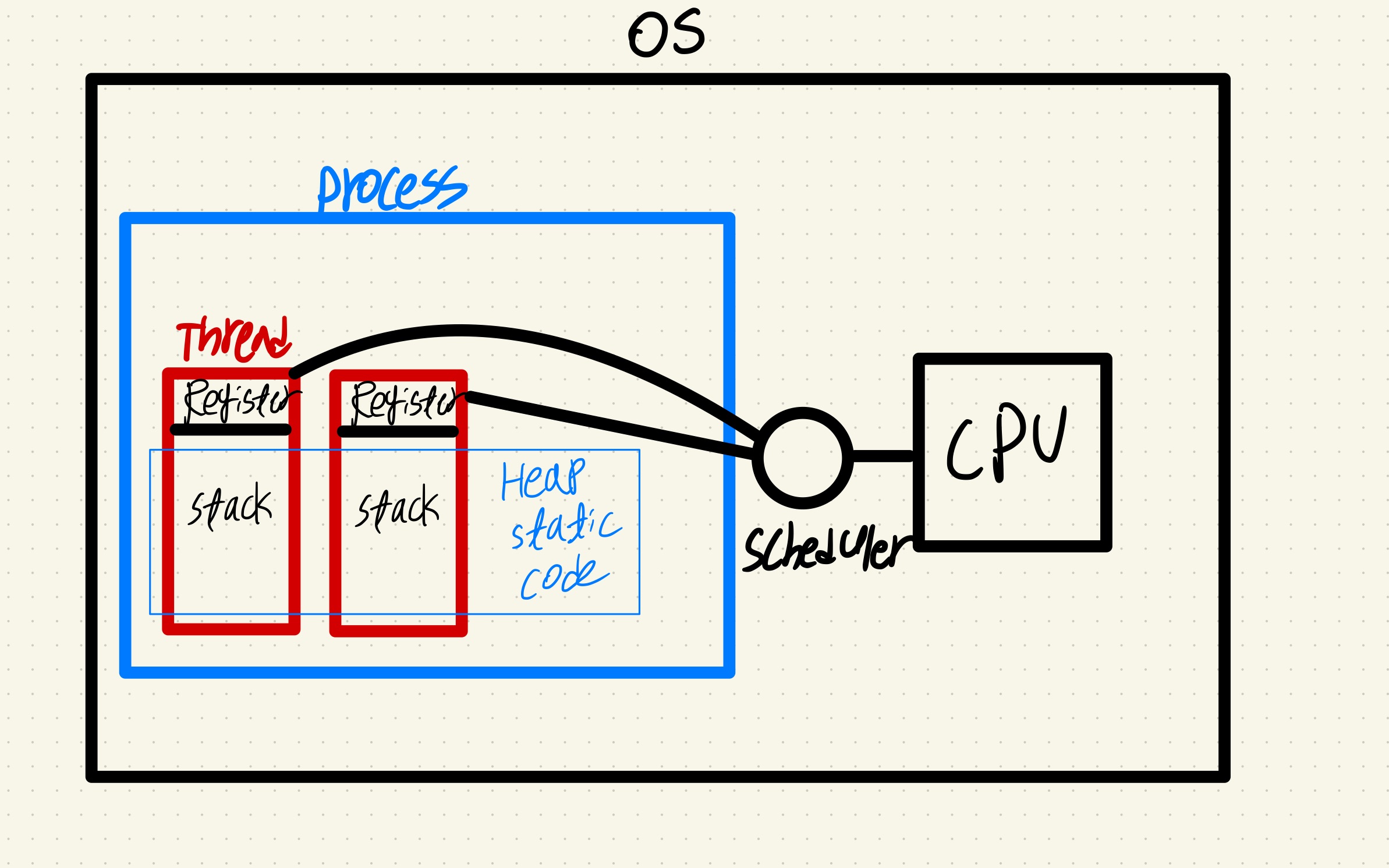 OS의 스케줄러는 스레드를 관리하고 스레드에 리소스를 할당한다.