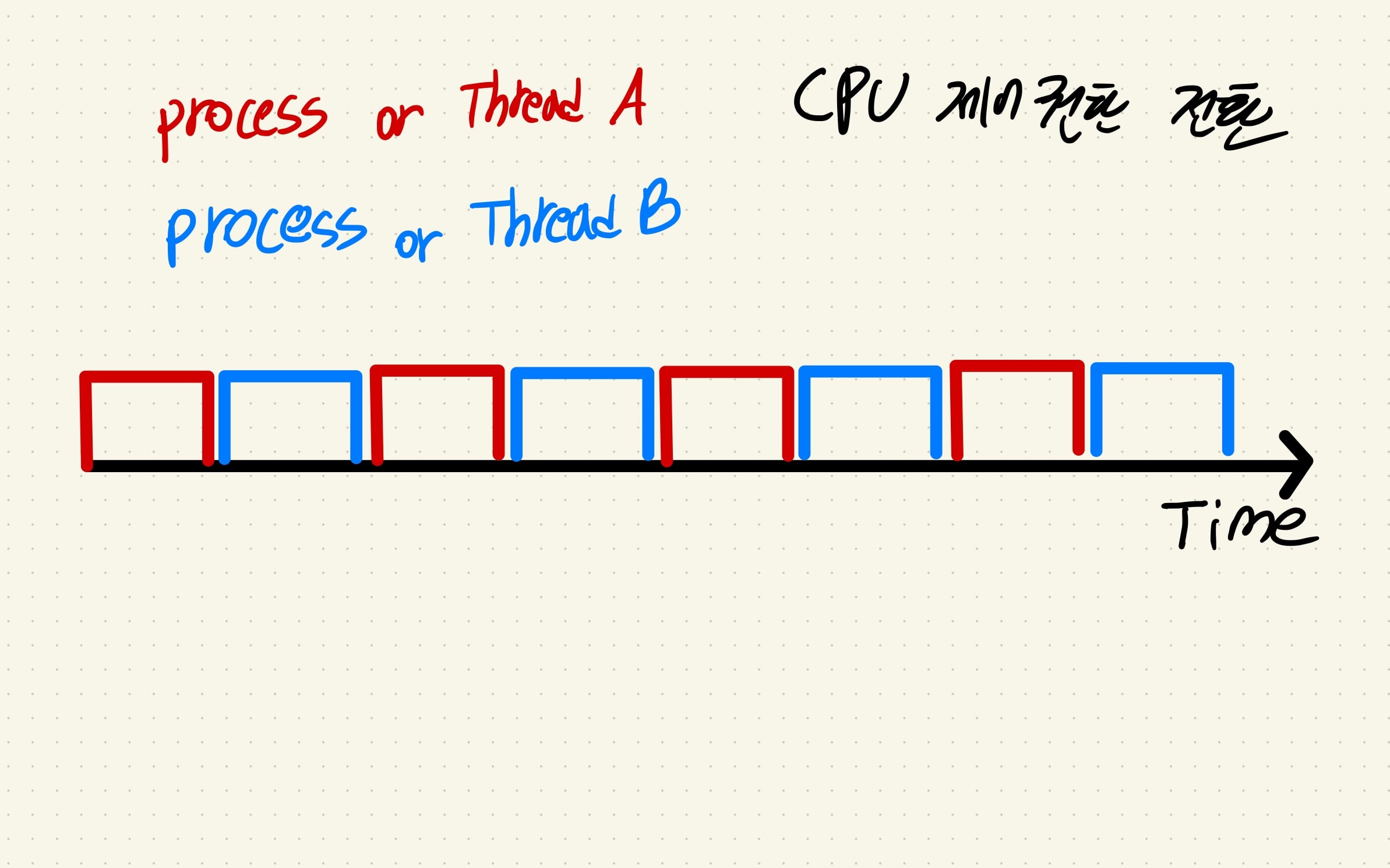 OS는 단일 프로세스 내에서 여러 스레드를 생성하고 필요에 따라 각 스레드에 CPU 시간을 할당한다.