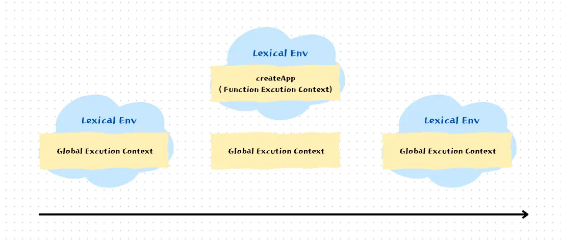 함수 정의, 블록, try-catch 등 특정 구문 구조와 연결되며 코드가 평가 완료될 때마다 새로운 Lexical Environment 생성