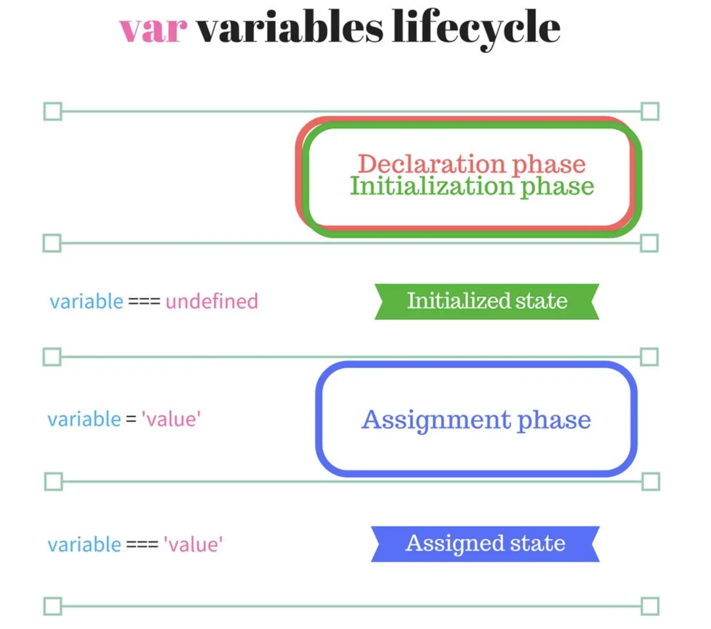 변수 선언의 생명주기는 일반적으로 선언 - 초기화 - 할당 단계를 가지고 있다.
