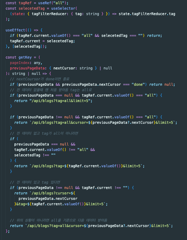그리고 처음 사용해본 Redux 코드 태그 컴포넌트가 따로 있고 그걸 누르면 tagRef 값이 바뀌면서 받아오는 url의 값이 바뀌는 것이었는데 이때 처음으로 상태관리로 편안하게 기능을 구현해서 필요성을 확 느낄 수 있었던 것 같다.